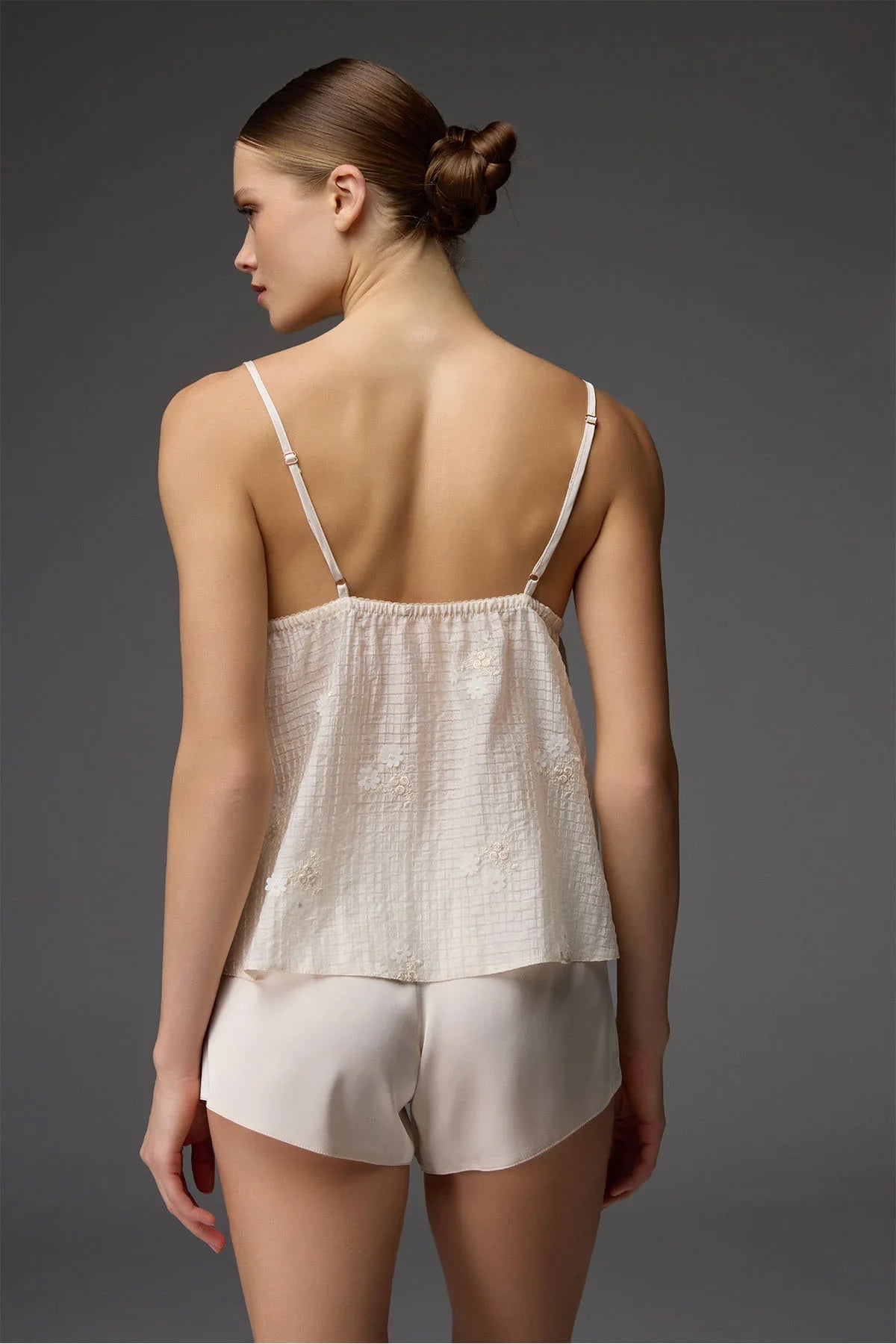 Degaje yaka ayarlanabilir askılı kısa ipeksi saten gecelik