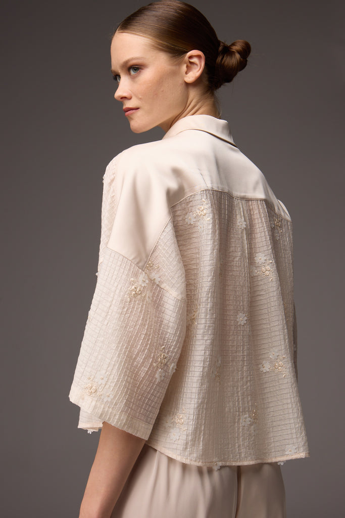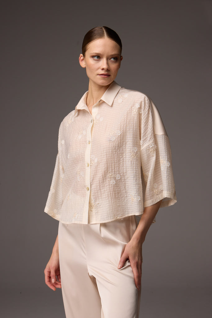 Gömlek yaka, önden düğmeli, truvakar kol, pijama üstü.