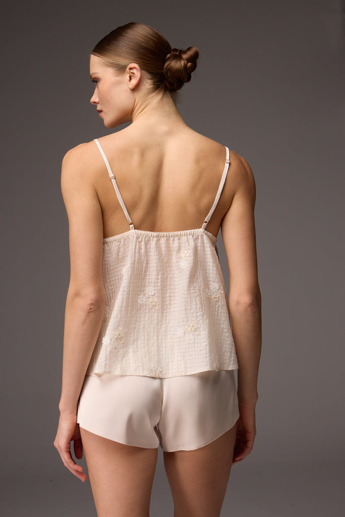 Askılı, degaje yaka, sırtı nakış detaylı ayarlanabilir askılı büstiyer