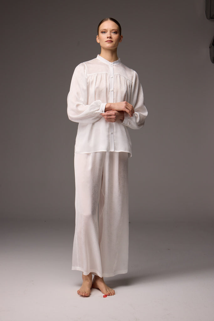 Alt: Düz kesim, beli lastikli, saten pijama altı.