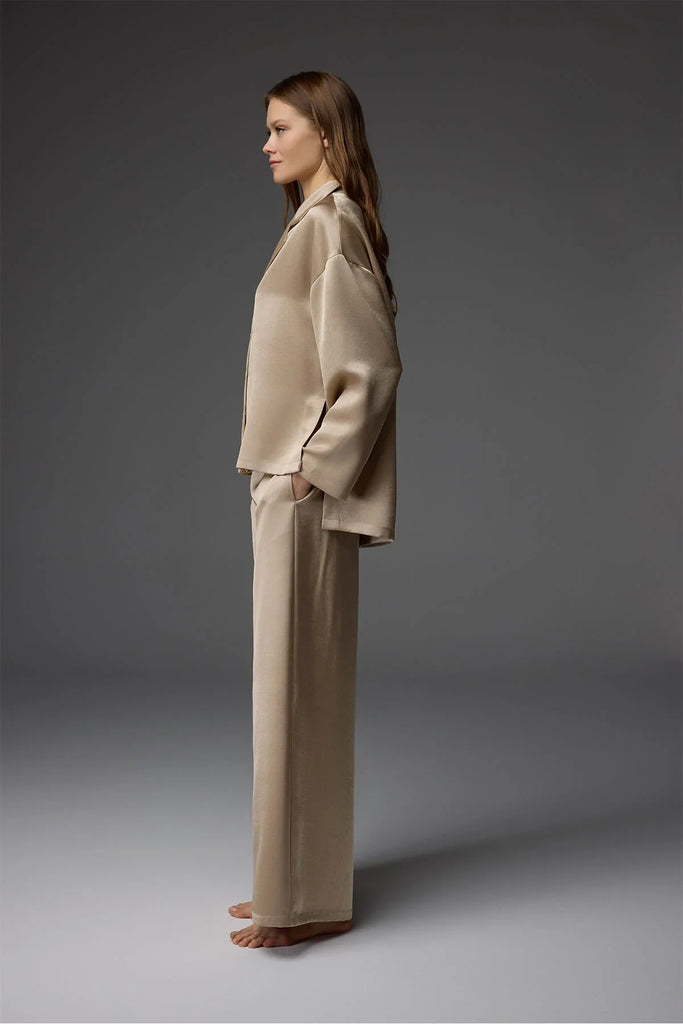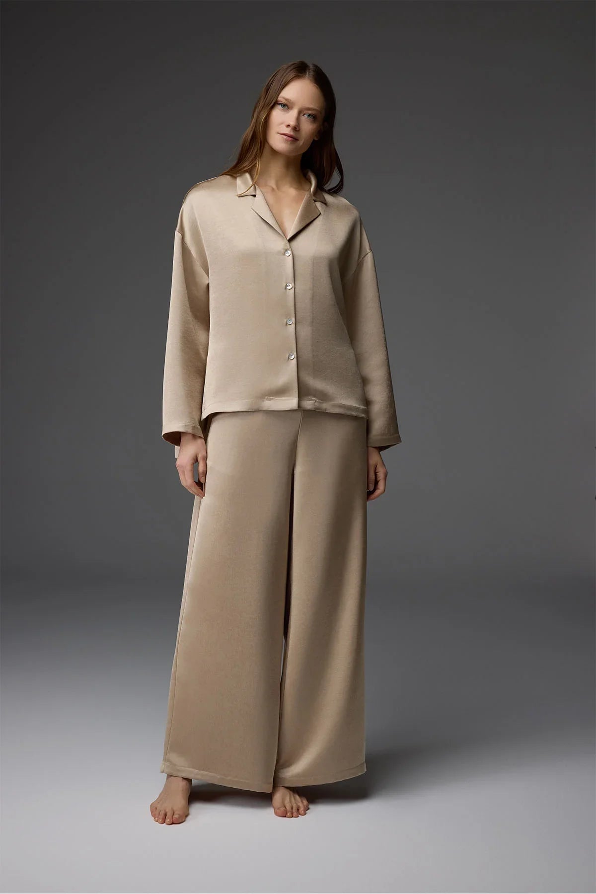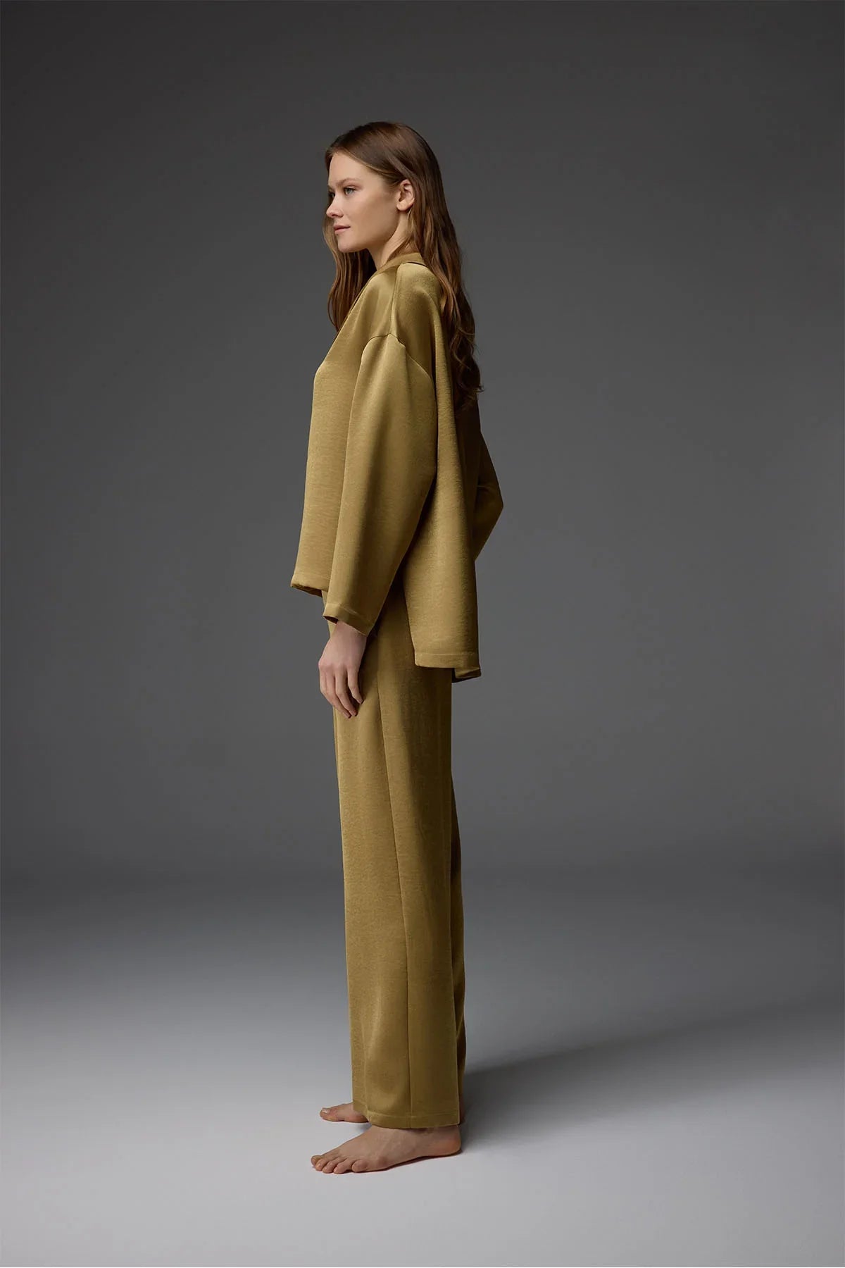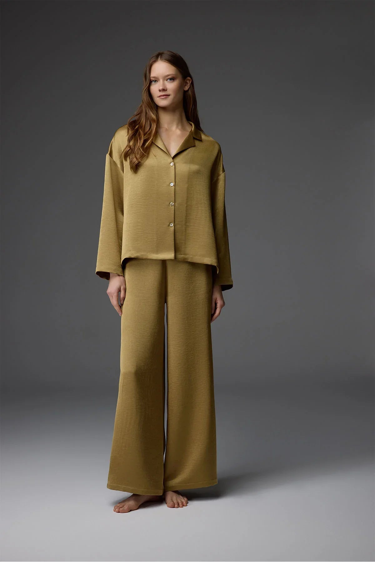 Dokuma Viskon Gömlek Yaka Pijama Takım BM-1813