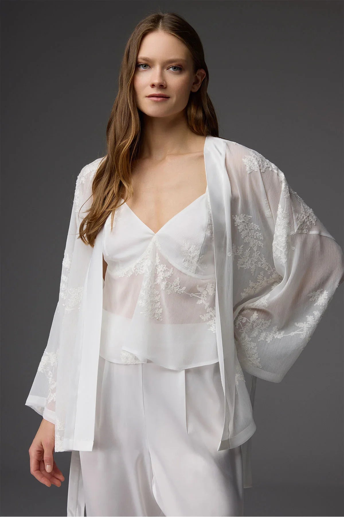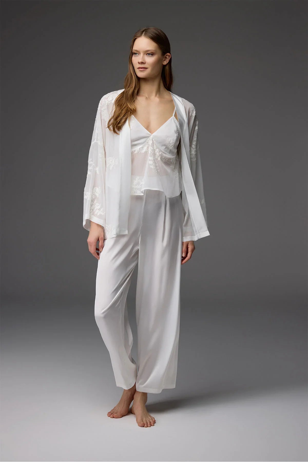 Nakışlı Sabahlık Sırttan Bağlamalı Büstiyer Pantolon 3 Lü Takım BM-1828