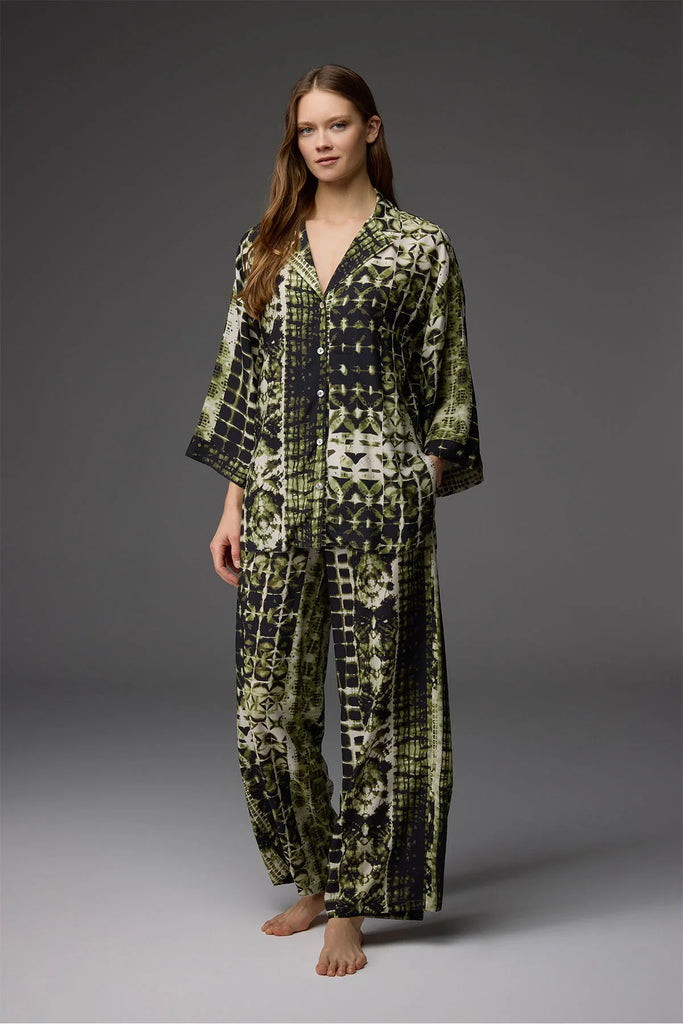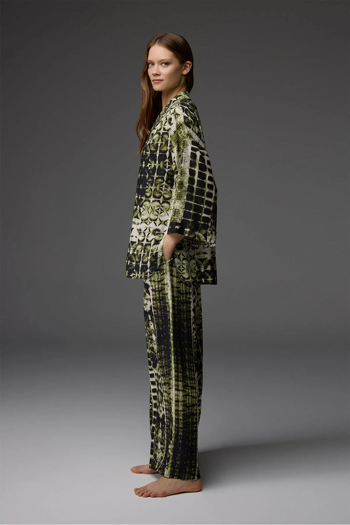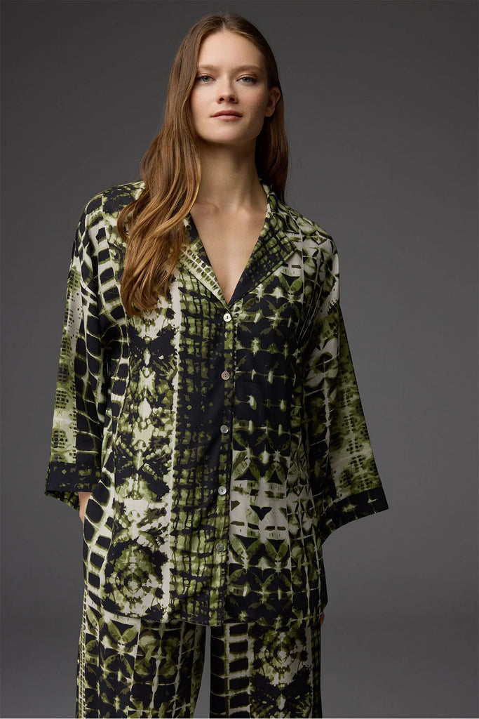 Viskon Desenli Gömlek Yaka Pijama Takım BM-1839