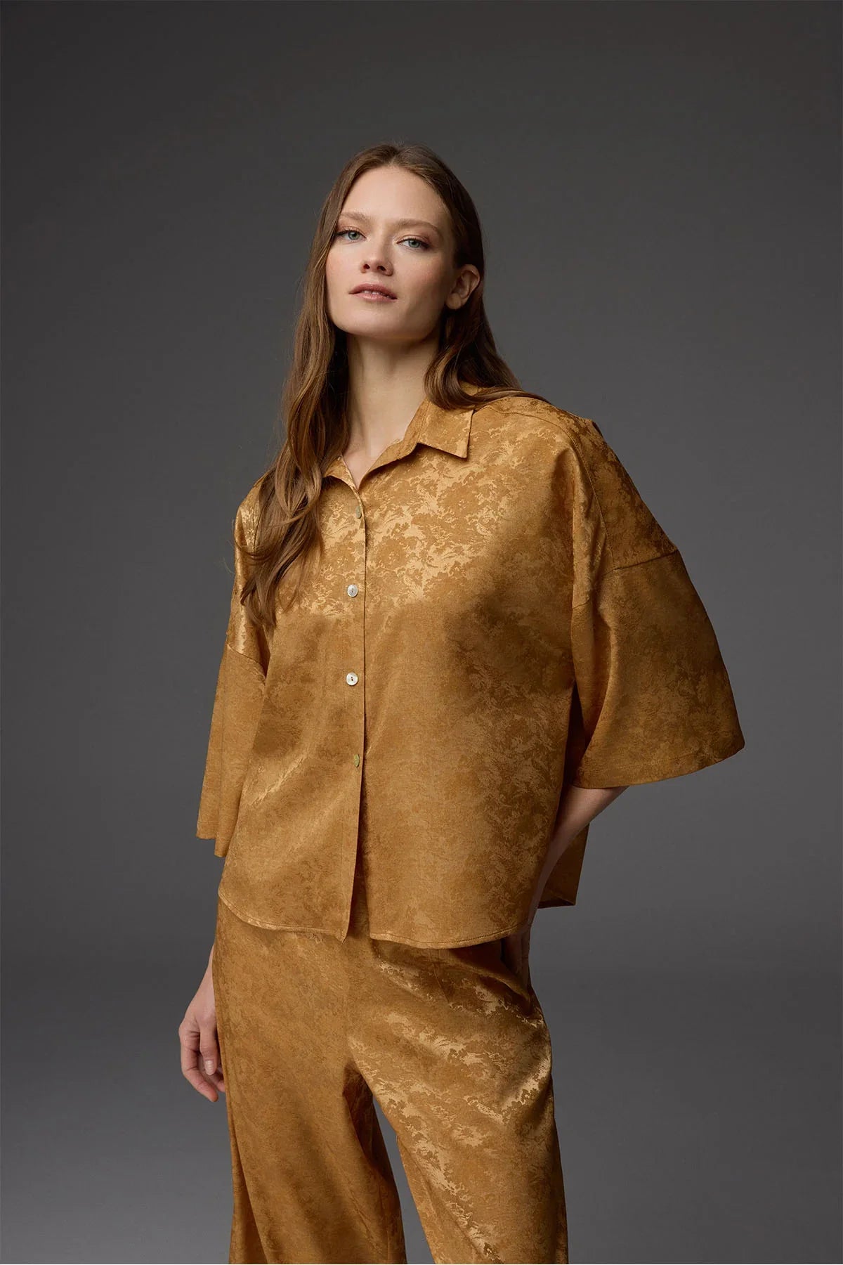 Kendinden desenli jakar truvakar kollu önden düğmeli  üst