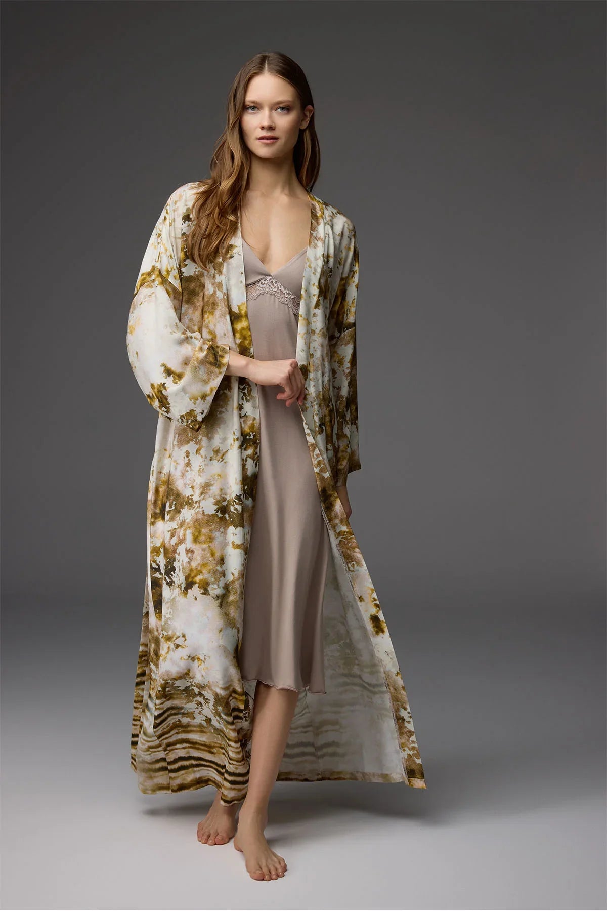 Viskon Desenli Sabahlık Dantelli Askılı Gecelik Takım BM-1844