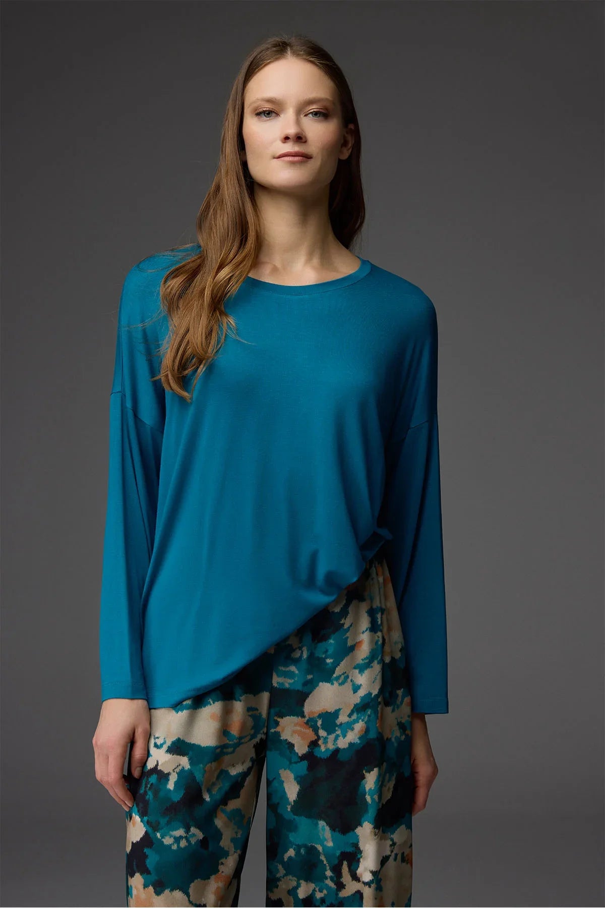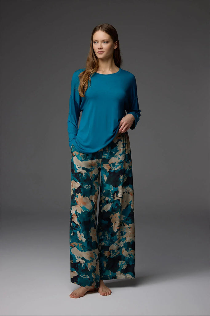 Viscose Patterned Trousers Crew Neck Blouse BM-1848