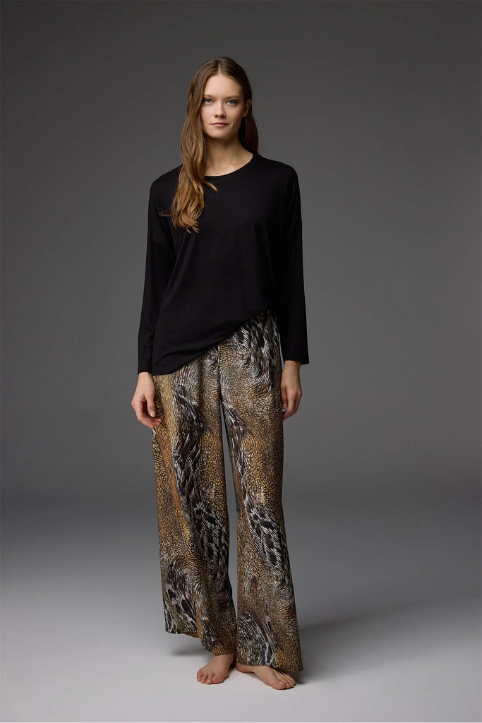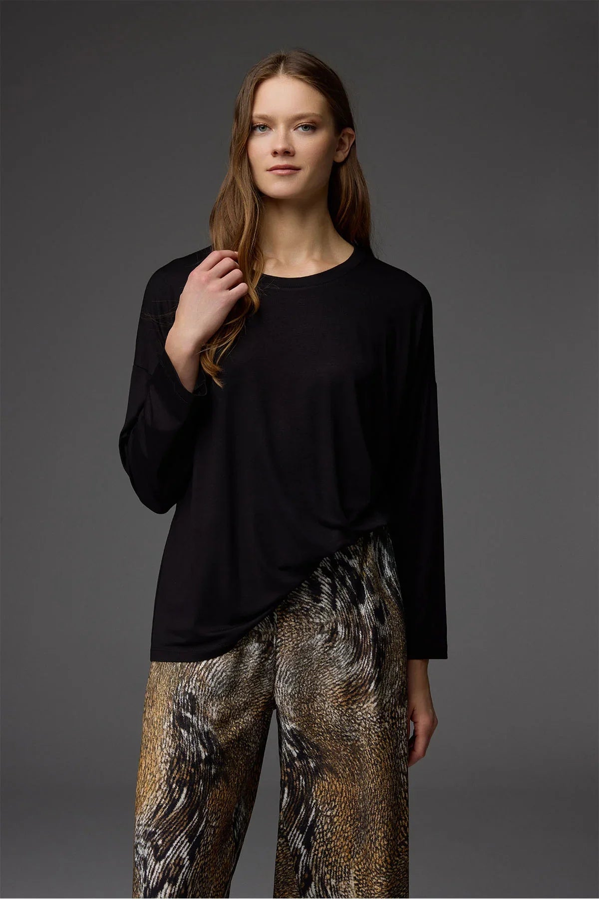 Viscose Patterned Trousers Crew Neck Blouse BM-1852